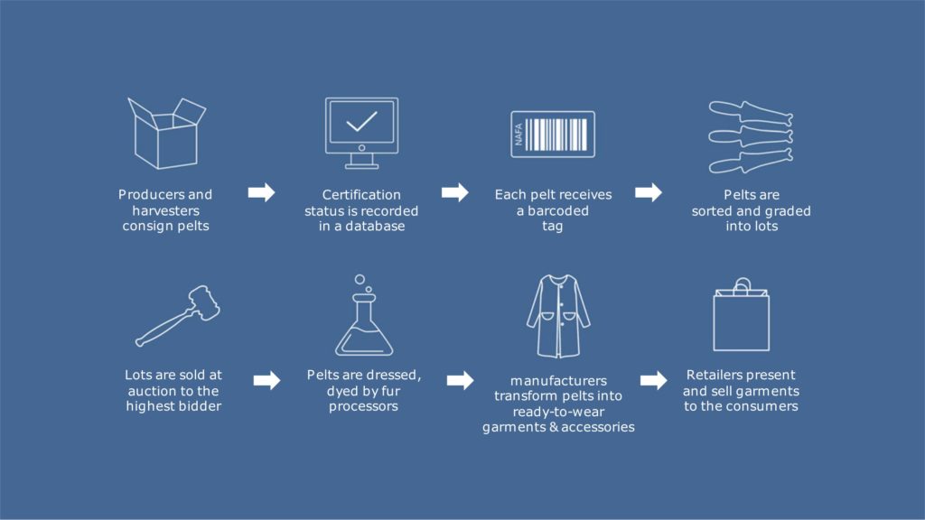 该认证是一项全行业倡议,渗透到从农场到零售的每个生产阶段。 2018 年,国际毛皮联合会 (IFF) International Fur Federation (IFF) 推出了 FURMARK 标志,让消费者能够识别环保和可持续的皮草。