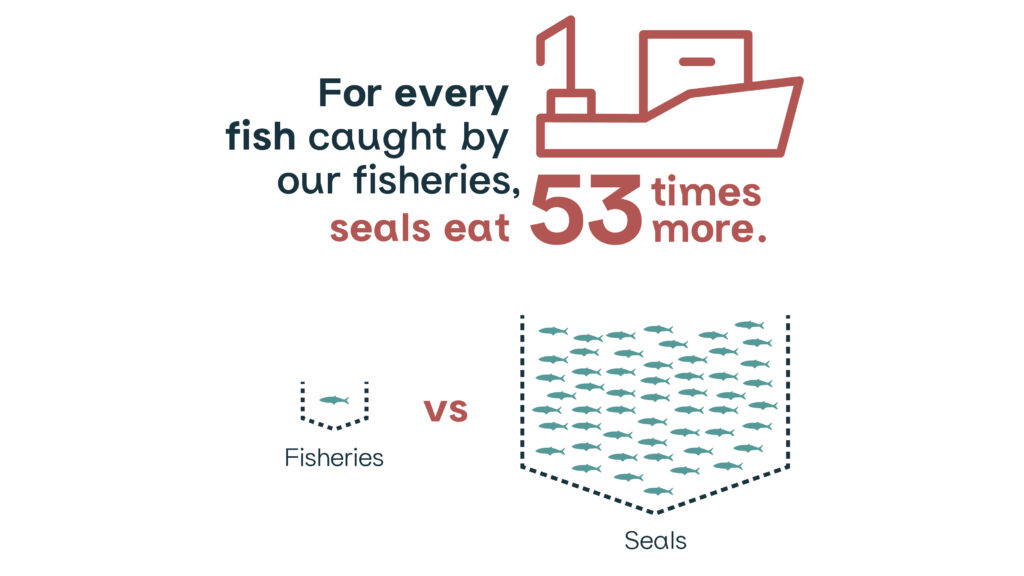 海豹吃很多鱼——每年大约 3000 万吨。这比我们整个大西洋捕鱼船队的捕捞量多 53 倍.Several studies have indicated the amount of fish eaten by harp seals. A study of harp seals by Polar Research estimated 7.4 kg/day for adult males and 9 kg/day for adult females, with females consuming more to support pregnancy and lactation: https://www.tandfonline.com/doi/pdf/10.3402/polar.v10i2.6771. Assuming the population is half male and half female, that means an average seal eats 2.99 tons/year. In 2019, the grand total of the Atlantic Coast commercial landings were 560,484 metric tonnes. https://www.dfo-mpo.gc.ca/stats/commercial/land-debarq/sea-maritimes/s2019aq-eng.htm Canada’s total seal population is estimated at more than 10 million. Ringed seal populations is estimated at 2.3 million: https://www.canada.ca/en/environment-climate-change/services/species-risk-public-registry/cosewic-assessments-status-reports/ringed-seal-2019.html Together with Harp Seal (7.6 million) and grey seals (505,000), this represents over 10M population for these 3 species. This means that the total Canadian seal population eats roughly 30 million tons of fish each year. That’s 53x more fish than the entire Canadian Atlantic fishing fleet catches! Facts: Ringed seal populations is estimated at 2.3 million: https://www.canada.ca/en/environment-climate-change/services/species-risk-public-registry/cosewic-assessments-status-reports/ringed-seal-2019.html Together with Harp Seal (7.6 million) and grey seals (505,000), this represents over 10M population for these 3 species. Calculation: (7.4+9)/2 = average of 8.2KG per seal. 8.2*365 days per year = 2,993KG. 2,993KG x 10 million seals = 29,930,000,000. 29,930,000,000 (total KG of fish eaten by seals)/ 560,000,000 (harvested by the Atlantic fishing fleet) = 53 times.与此同时,海豹数量处于有记录以来的最高水平。控制海豹种群是我们可以帮助鱼类种群反弹的方法之一。反过来,也会支持我们的渔业和海洋经济,它们每年创造 350,000 个工作岗位并带来超过 $310亿的收入.Government of Canada. Blue Economy Strategy. 2021 https://www.dfo-mpo.gc.ca/campaign-campagne/bes-seb/index-eng.html